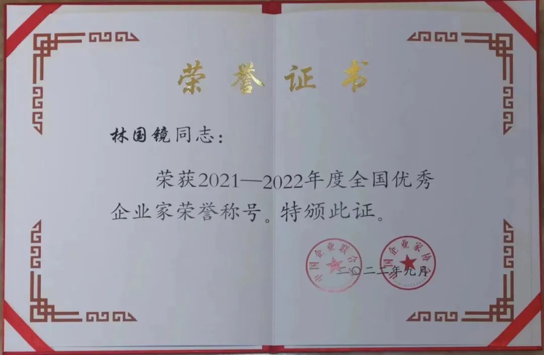 2022年9月16日,由中国企业联合会、中国企业家协会主办的2022年全国企业家活动日暨中国企业家年会在内蒙古包头隆重举行。会上发布并表彰了“2021-2022年度全国优秀企业家”,“M88明升集团董事长林国镜先生获评“全国优秀企业家” 荣誉称号。